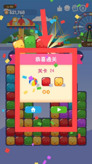 2、玩家在游戲中需要通過交換彩色方塊位置,使三個及以上相同顏色方塊連成一線進行消除。