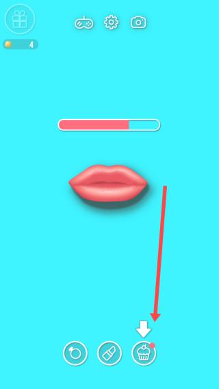 1、玩家需要點擊進入我的嘴唇,界面上有嘴唇圖案和不同功能圖標如口紅、美妝工具圖標,上方進度條可能代表時間或任務進度。