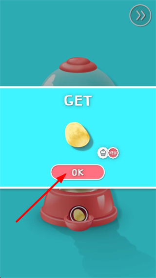 2、扭蛋掉落出物品后,界面會顯示GET提示和對應的物品,點擊OK按鈕,即可確認獲取該物品,繼續進行扭蛋收集操作。