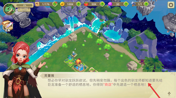 1、需先給巨龍準備舒適的棲息地,要到商店中挑選棲息地,按照指引開展棲息地建造準備。