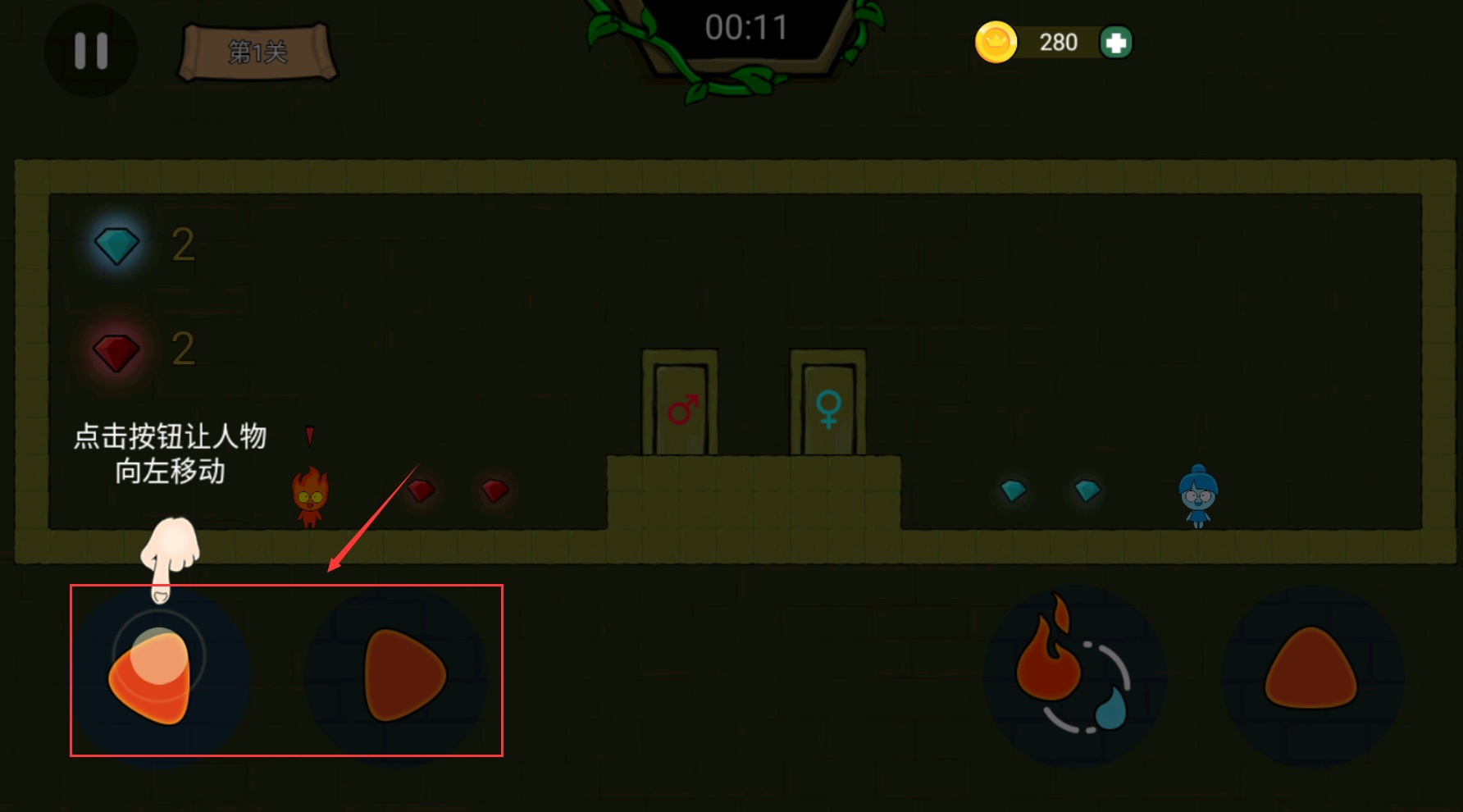 3、通過點擊屏幕左右兩側的控制按鈕,可以靈活操控角色移動方向。