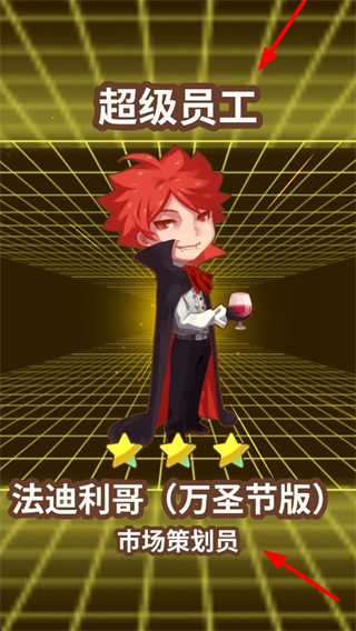 4、完成操作后可獲得超級員工,如法迪利哥萬圣節版,該員工作為市場策劃員,助力提升公司的運營效率。