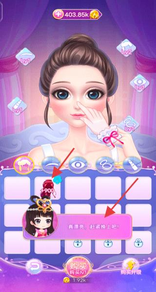 2、點擊合成可以花費金幣購買發型、眉筆美瞳腮紅口紅,兩個相同的類型可以合成高級裝飾,提升自己美妝值。