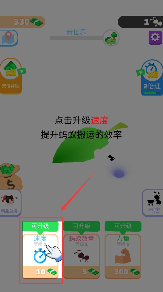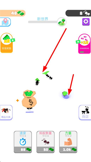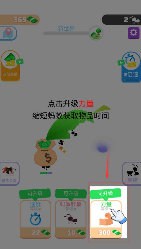 3、最后強化螞蟻的力量值,使其能夠搬運更重的物資獲得額外積分。