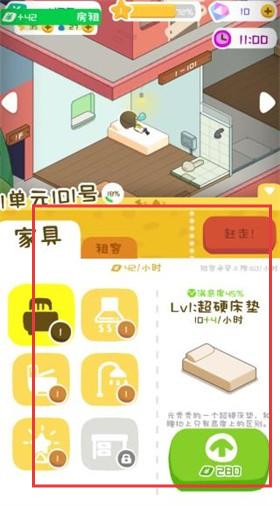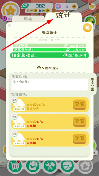 1、玩家下載好游戲打開游戲頁面,會發現自己擁有一個公寓,可招募租客進行經營。