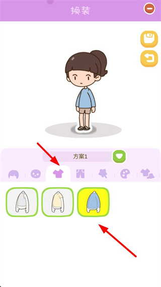 2、選擇不同服裝,如藍色上衣等,裝扮角色,進一步個性化角色形象,增強游戲的趣味性和參與感。
