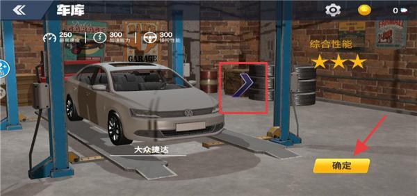 2、選擇好車輛這里選的是游戲送到大眾,玩家可以選其它性能更強的車輛,選好后點擊確定進入游戲。