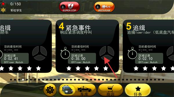 2、在任務頁面可以查看各種任務目錄,操作方法很簡單,按住車身后面的區域來駕駛行動向左向右移動駕駛的方向。