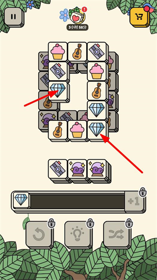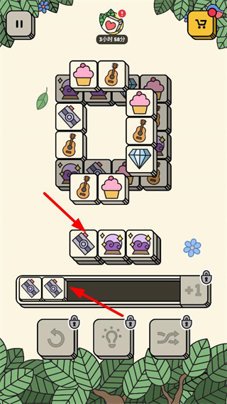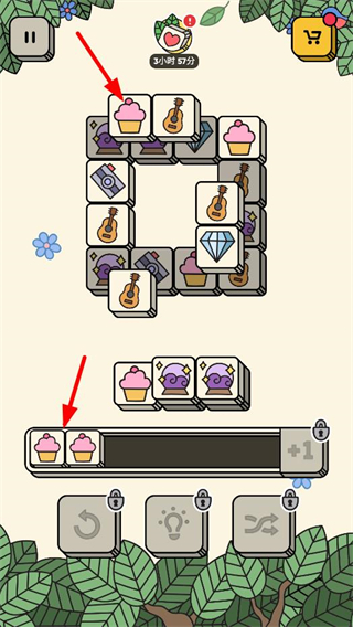 2、仔細觀察并找出三個完全相同的圖案,通過滑動操作將它們移動到一起完成消除。