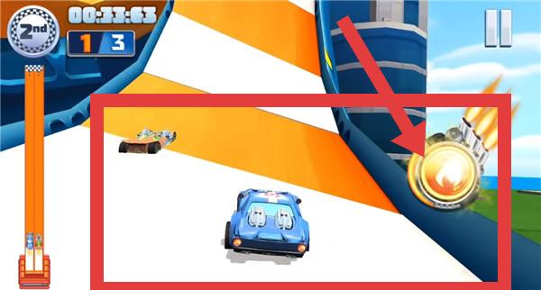 2、極速競速挑戰:操控賽車在巨型賽道漂移馳騁,利用增速按鈕提升速度,超越對手抵達勝利終點。