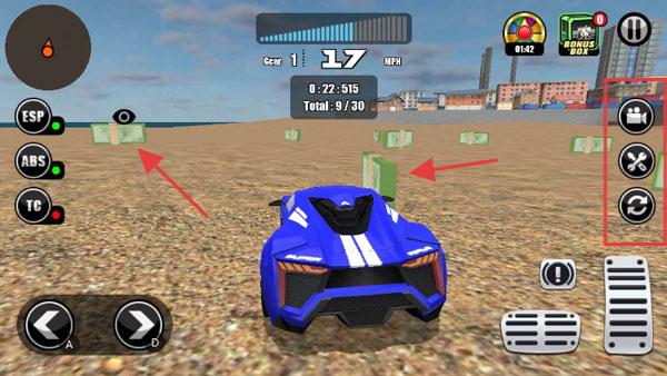 2、掌握好各種按鍵以及功能即可輕松進行駕駛和體驗,左側代表左右移動的方向,右側剎車、油門以及緊急停車還有就是右側的切換模式,賽車修理以及重置位置的功能設計。