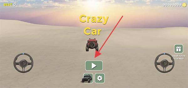 1、下載安裝瘋狂汽車這款游戲,進入游戲之后點擊游戲桌面的中間的鍵位進入游戲。