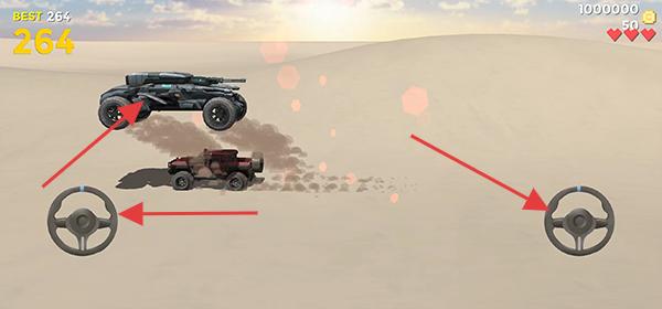 2、雙輪盤操控:通過左下角與右下角方向盤控制車輛轉向,靈活調整角度撞擊對手側面或尾部,避免正面被撞。