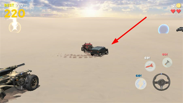 1、進入對抗場景:點擊開始游戲,選擇車輛進入沙漠地圖,三條生命狀態下開啟撞車挑戰。