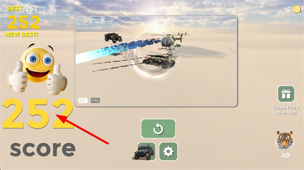 3、結算界面會顯示當前得分和新紀錄,可選擇重新開始挑戰,沖擊更高分數,也能查看本局的游戲回放。