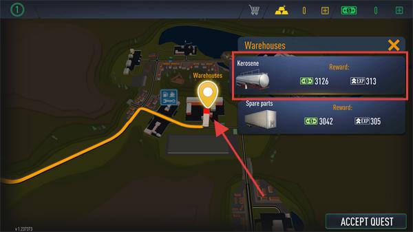 2、進入游戲后你可以馬上接受一個運輸任務,右側會顯示當前可接受任務,每一個任務的報酬都不相同。
