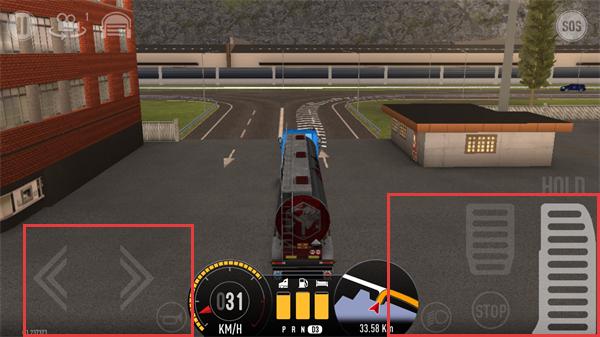 3、游戲的具體操作也很簡單,接下來以按鈕模式為例左側可控制車輛的方向,右側的大踏板按鈕是前進鍵,小踏板按鈕是后退鍵,下側還有喇叭鍵和燈光鍵。