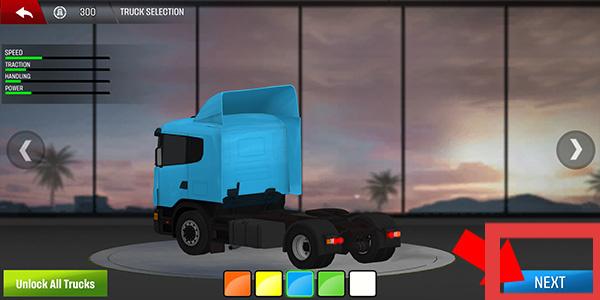 3、接下來選擇你想要使用的卡車,準備進入游戲,進入游戲后油門與剎車按鈕位于屏幕右側,方向控制鍵在左側,中央則是各類功能按鈕。