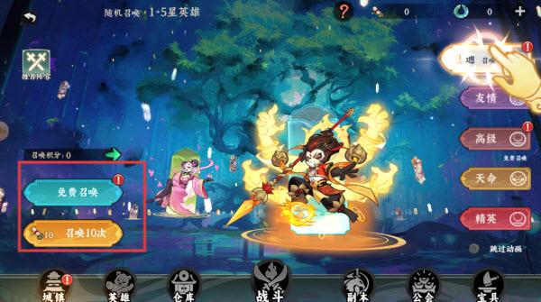 2、便捷召喚系統:通過召喚按鈕快速招募伙伴,多種召喚類型與卡池選擇,助力玩家快速組建初始隊伍。
