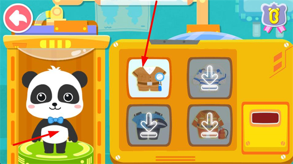 1、選擇界面里的服裝樣式,點擊對應服裝選項,為熊貓更換裝扮,解鎖對應的變裝效果,推進變裝流程。