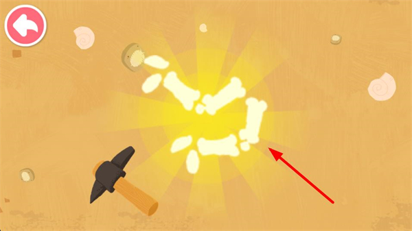 4、持續敲擊石塊后,石塊會破碎并出現恐龍的骨頭,獲取該物品的同時完成挖掘任務,推進游戲的互動流程。
