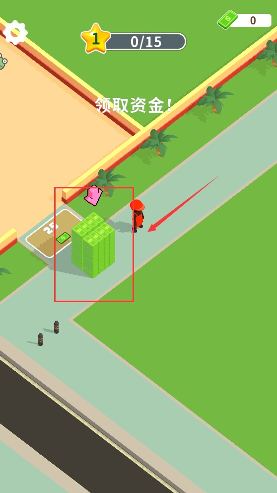 1、成功啟動游戲后,系統將加載3D商業街場景,背景呈現繁華的都市景觀,并伴有熙攘的人群音效。點擊角色移動至銀行圖標處,即可領取50,000虛擬創業基金。