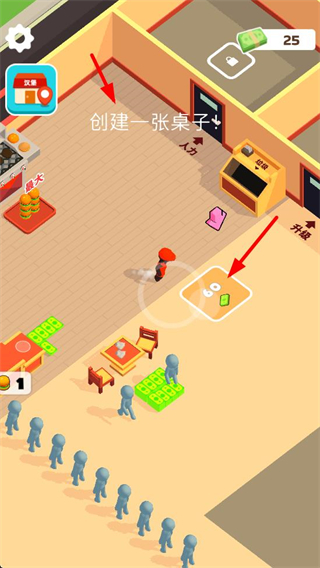 4、按提示消耗資源創建一張桌子,增加店鋪的接待容量,以便接待更多顧客,提升店鋪的經營效率。