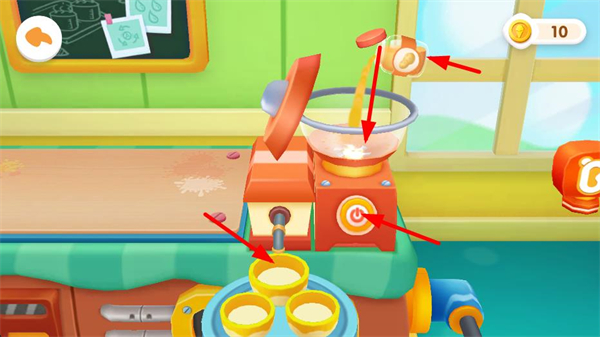 2、添加對應食材到加工裝置里,點擊啟動按鈕開啟加工,讓食材混合處理,推進甜品的制作流程。