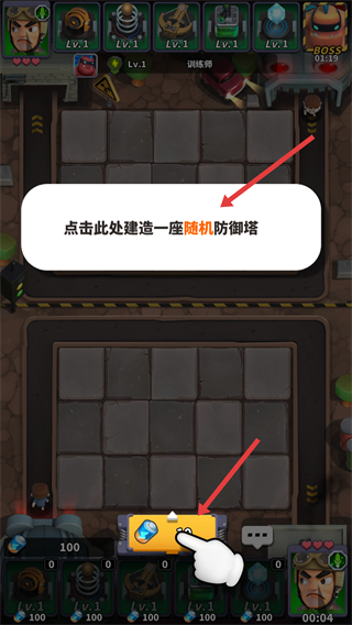 1、可點擊建造隨機防御塔,消耗資源在場景里建造,形成防御陣線,抵御敵人進攻。