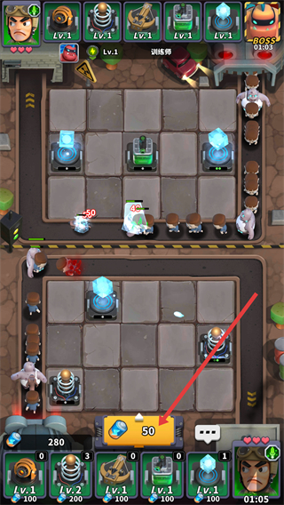 2、炮塔覺醒強化:通過戰斗積累資源覺醒炮塔技能,如超級魔鏡的合成能力與仿生蛇的點數增減效果,提升炮塔戰術價值。