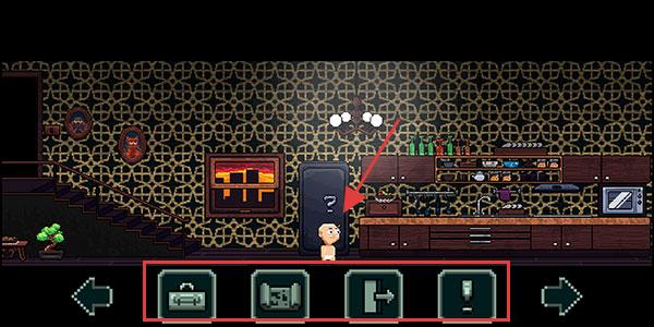 3、玩家操控角色在像素風格場景如室內場景中移動探索,通過點擊屏幕上的方向按鈕控制角色行動,與場景中物體互動尋找線索,解開謎題推進游戲劇情。