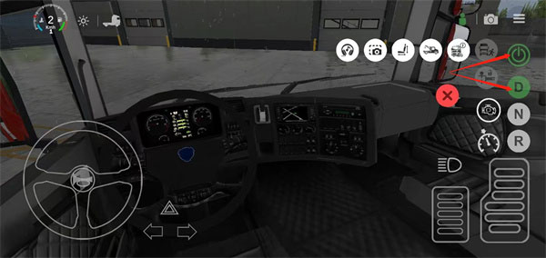 2、駕駛操作步驟:走到卡車主駕駛位置點擊上車,啟動引擎并調整檔位,通過方向盤與油門剎車控制行駛,注意避讓來往車輛。