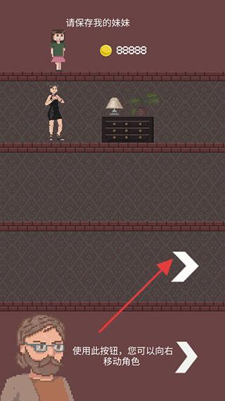 2、玩家操控角色在公寓場景中移動,通過點擊右箭頭按鈕使角色向右移動,游戲設定任務玩家需操控角色在場景中行動,避開喪尸完成任務目標。
