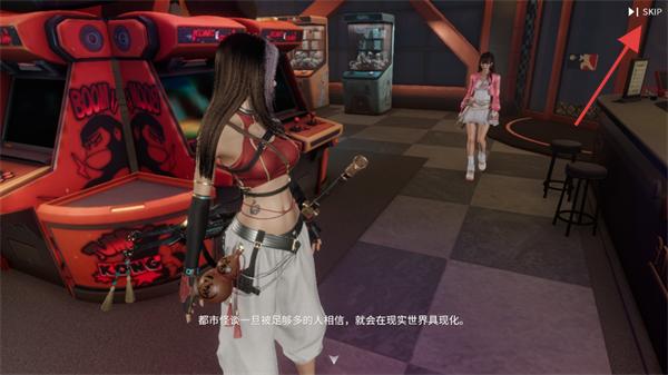1、游戲通過劇情驅動玩家在不同場景如街頭游戲廳,跟隨劇情對話如都市怪談相關內容推進游戲,了解故事背景和任務目標。