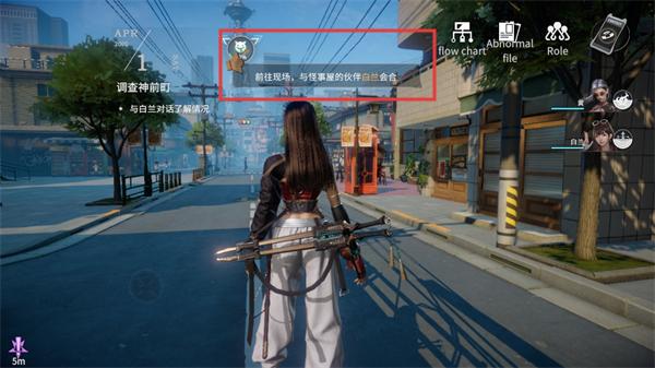 2、設有任務指引如調查神前町前往現場,與犯罪驟的伙伴白蘭會合,玩家需操控角色在開放世界場景中移動,完成任務,推動故事發展。