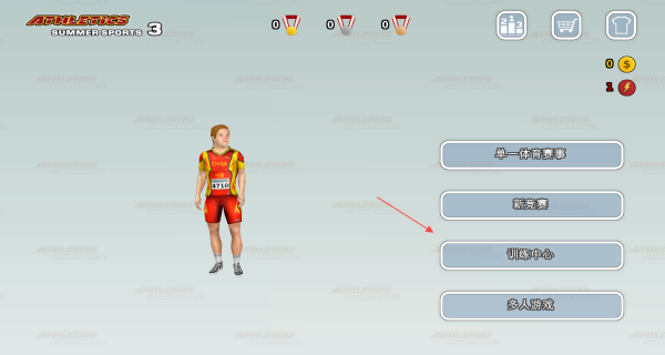 1、打開佳作后,在主界面玩家操控角色,按箭頭指示點擊訓練中心選項,進入訓練模式。
