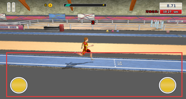 2、訓練場景中角色在跑道奔跑,玩家通過屏幕下方按鈕控制角色動作,進行跑步訓練。