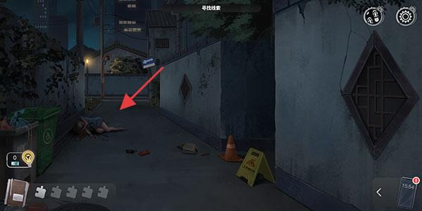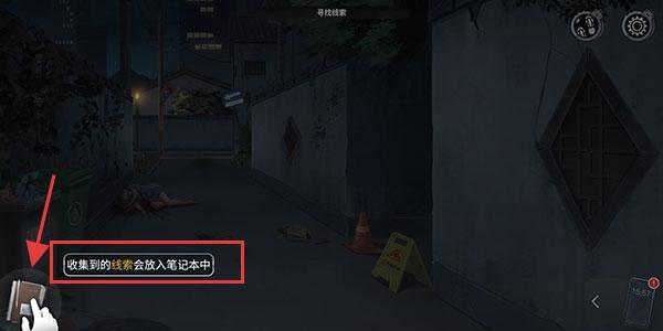1、玩家在游戲場景如夜晚小巷中探索,尋找各類線索如地上的物品血跡等,收集到的線索會放入筆記本中為后續推理做準備。