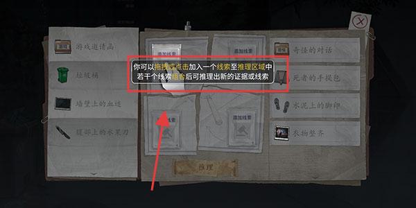 2、在筆記本界面玩家可將線索拖放至推理區域,通過組合若干線索,推理出新的證據或線索,逐步揭開案件真相。