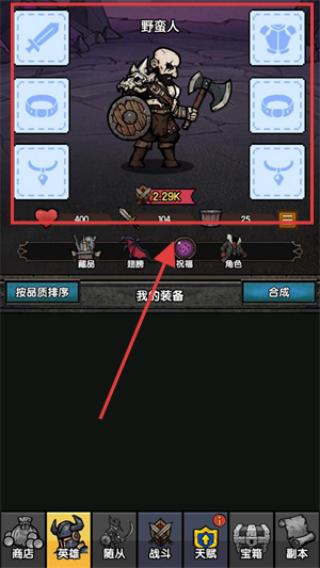 3、點擊英雄頁面,玩家可以為角色裝備不同的武器,增強戰斗力。