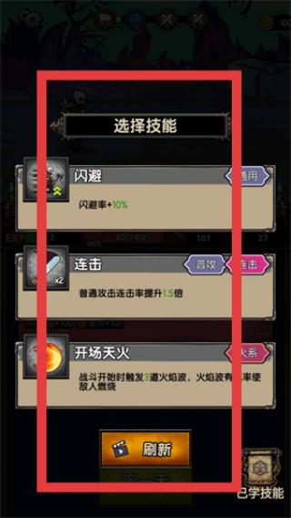 2、完成這些事件后,玩家將獲得各種屬性加成和經驗值,經驗條滿時角色會升級,升級時可以選擇一項技能來強化自己。