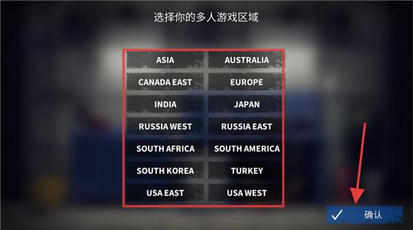 1、玩家在多人游戲開始前,需選擇所在區域如ASIA、AUSTRALIA等,選擇合適區域可減少網絡延遲,提升游戲體驗。
