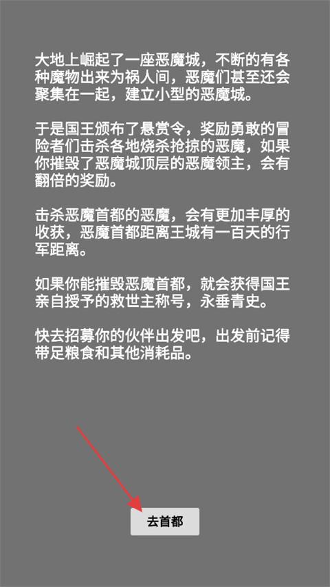 2、閱讀佳作劇情介紹,知曉惡魔城的背景故事后,點擊去首都按鈕,正式進入佳作劇情環節。