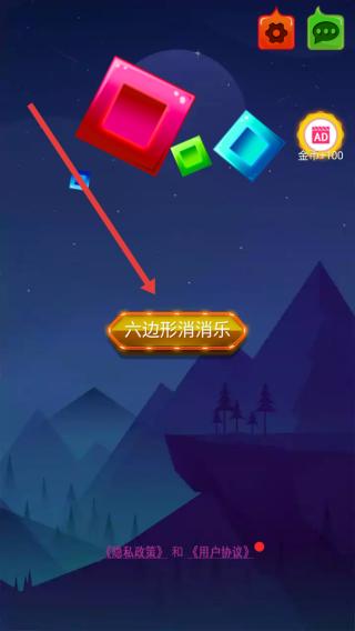 1、玩家需要打開游戲點擊【六邊形消消樂】進入游戲,了解游戲基本規則和界面元素。