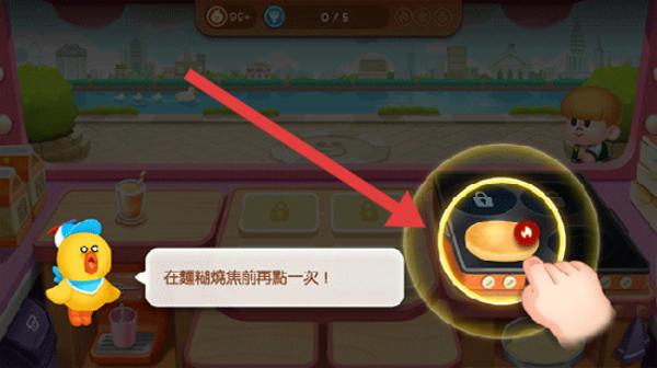 3、制作松餅時依據提示【在面糊燒焦前再點一次】,適時點擊操作區域,防止松餅燒焦,順利完成訂單任務。