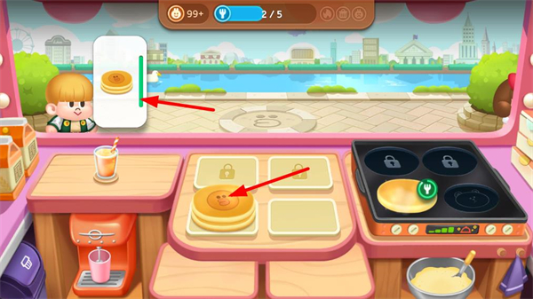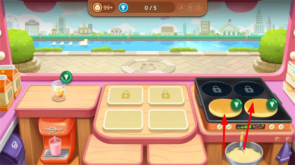 3、料理升級系統:使用金幣提升食材品質與廚具效率,如升級咖啡機縮短制作時間,解鎖火焰加速特效提升連擊獎勵,形成成長反饋。