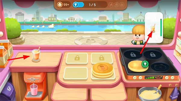 3、操作桌上的飲品,將其對應配送,完成該物品的交付任務,積累任務進度,朝著目標繼續推進。