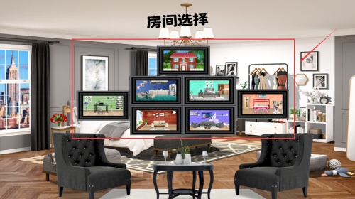 1、點擊"開始游戲"按鈕即可進入裝修世界,首次游玩將展示5套不同戶型的精裝樣板房供選擇。