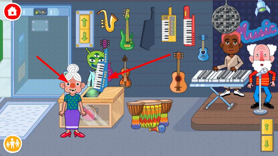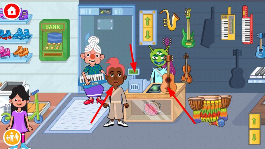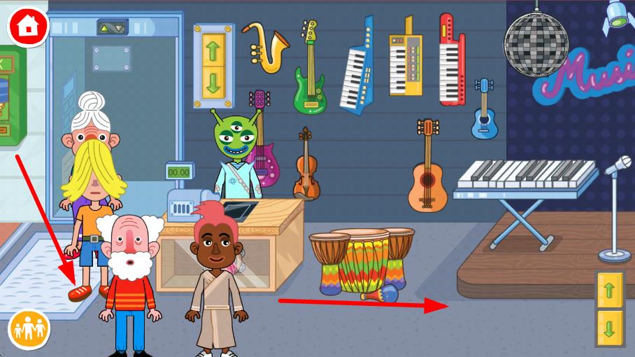 1、在音樂商店場景里移動角色,靠近展示的樂器與角色,通過互動操作熟悉場景,開啟音樂商店的探索流程。