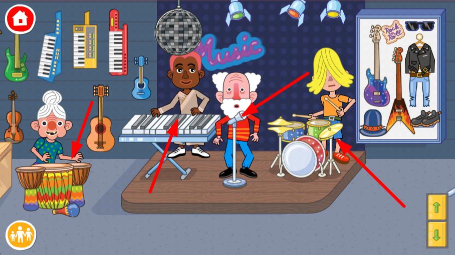 2、引導不同角色前往舞臺區域,讓他們拿起對應樂器,比如鍵盤、鼓等,完成樂器演奏的互動,觸發表演環節。